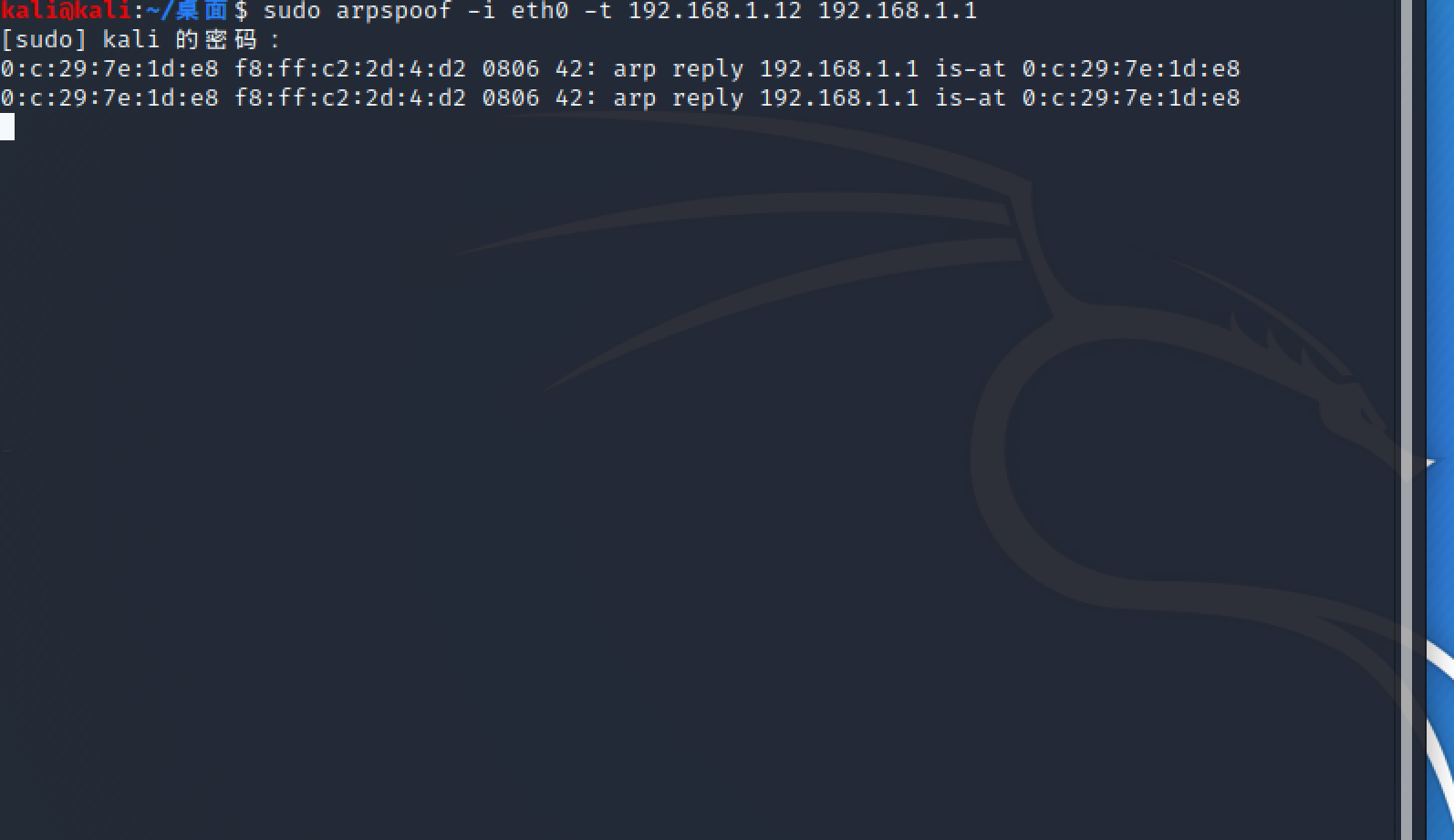 arpspoof -i eth0 -t 192.168.1.12 192.168.1.1