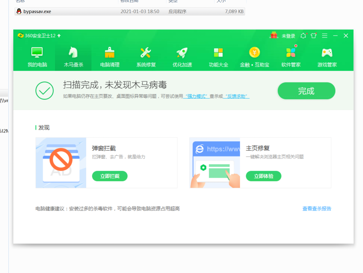 360杀毒扫描显示安全