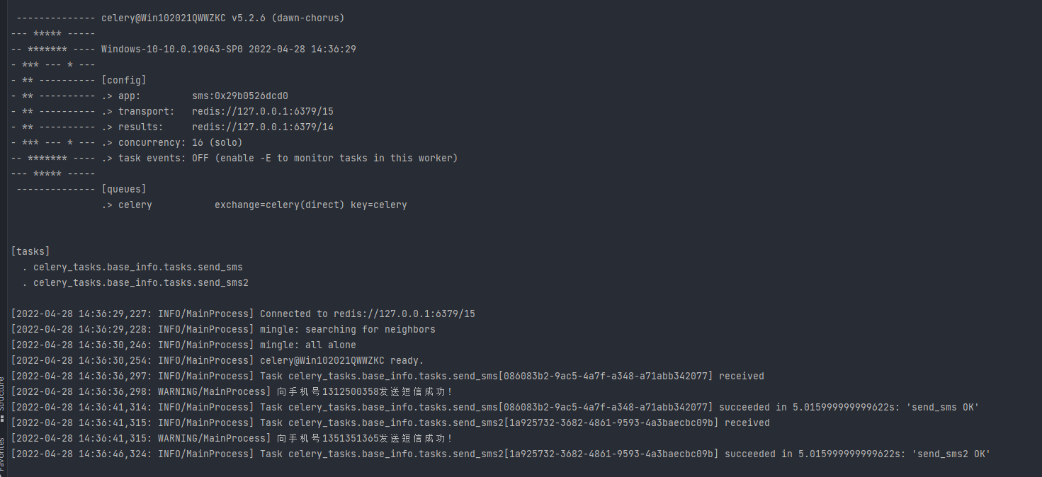 使用命令:>celery -A celery_tasks.mian worker --loglevel=info