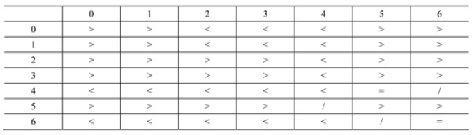 栈顶算符 < 读取的算符将读取的算符压入栈,继续处理下一个字符;栈顶算符 > 读取的算符栈顶算符出栈,从操作数栈中取出两数字,根据出栈算符做运算,运算结果再压入操作数栈,继续处理当前字符;栈顶算符 = 读取的算符栈顶算符出栈,括号出栈不保存,继续处理下一个字符;