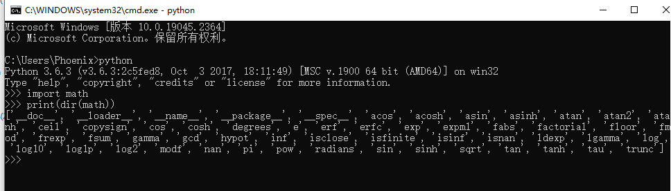 用cmd打开Python环境,随便导入一个模块,使用如下的方式打开方法的字典