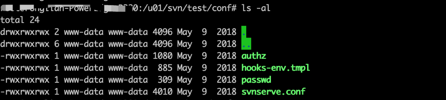 进入安装目录的conf,其中包含authz、passwd、svnserve.conf三个文件