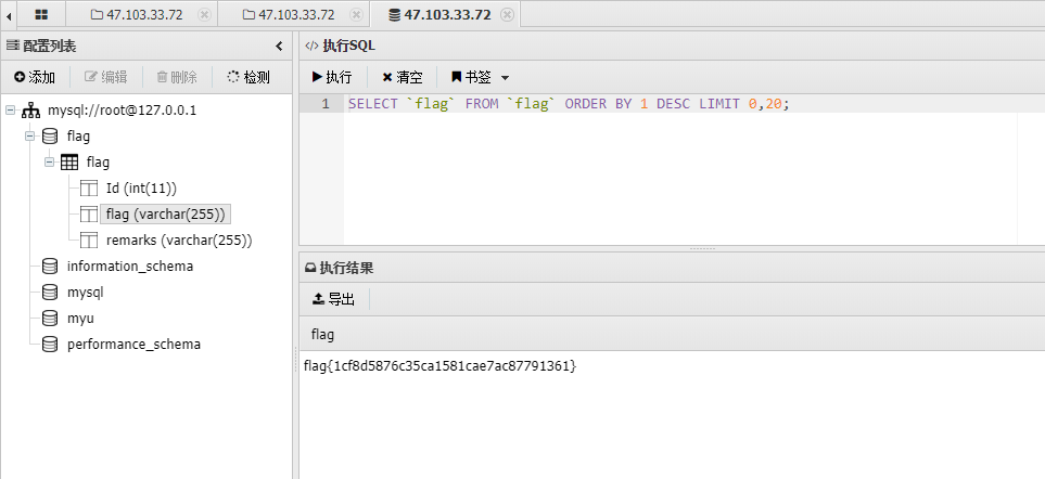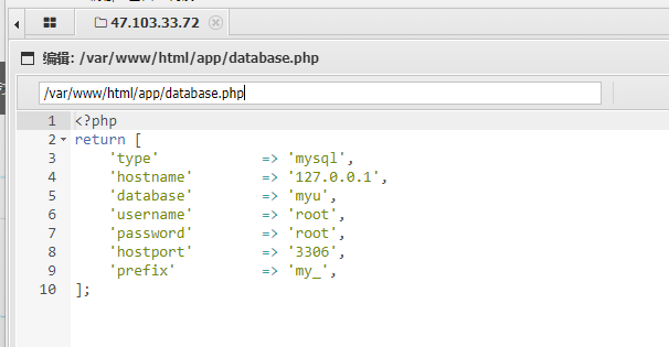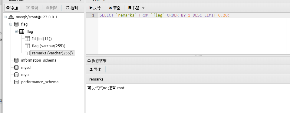 根据提示 找到database文件 发现数据库的账号与密码root/root