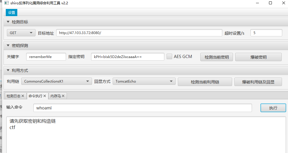 发现rememberMe=deleteMe特征,该特征是shiro框架,直接利用工具