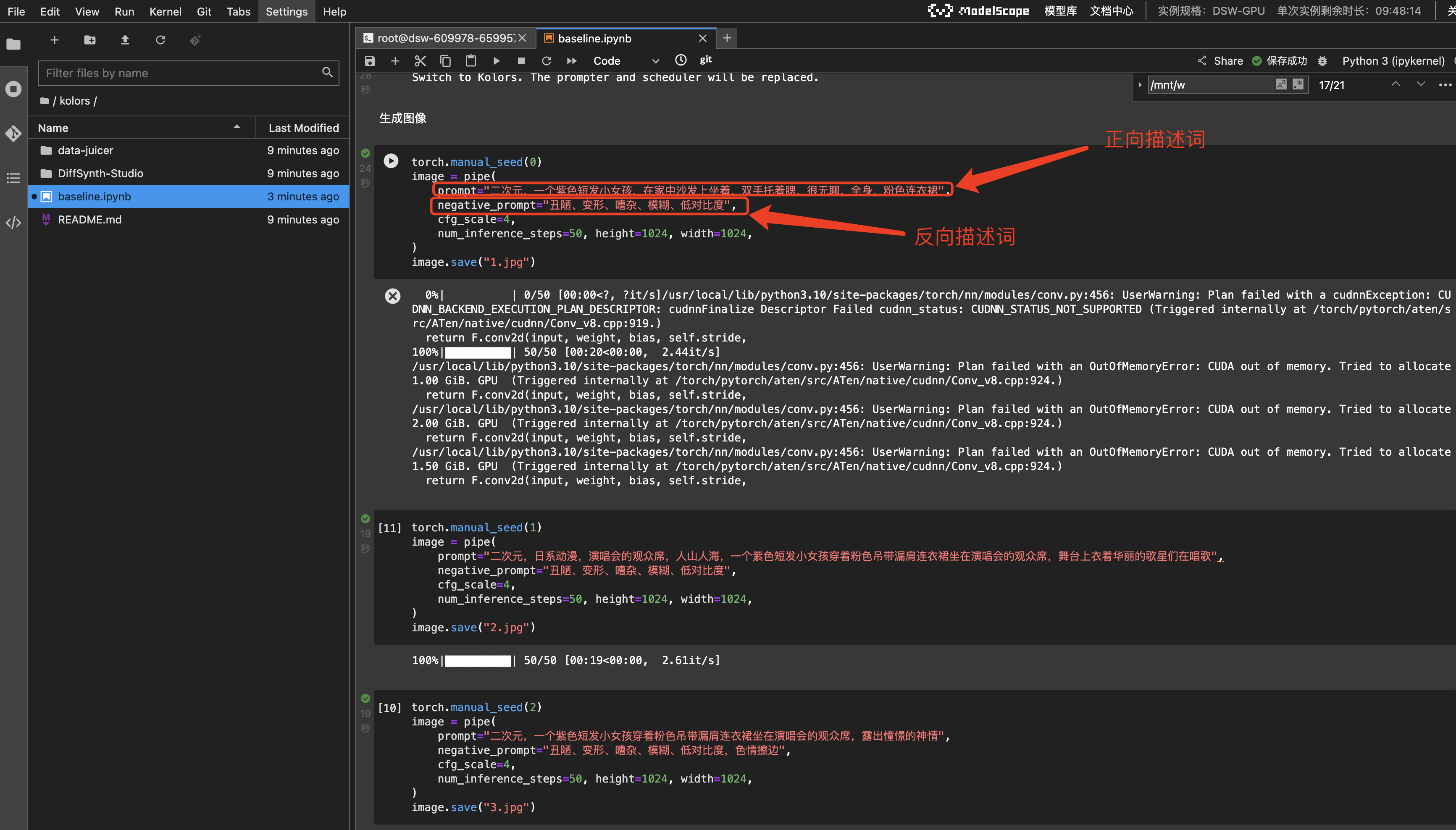 进入kolor/baseline.ipynb执行以下命令