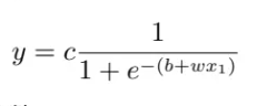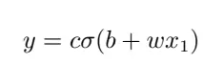 其横轴输入是 x1,输出是 y,c 为常数。如果 x1 的值,趋近于无穷大的时候,e−(b+wx1) 这一项就会消失,当 x1 非常大的时候,这一条就会收敛在高度为 c 的地方。如果 x1 负的非常大的时候,分母的地方就会非常大,y的值就会趋近于 0。所以可以用这样子的一个函数逼近这一个蓝色的函数,即 Sigmoid 函数,Sigmoid 函数就是 S 型的函数。因为它长得是有点像是 S 型,所以叫它 Sigmoid 函数。为了简洁,去掉了指数的部分,蓝色函数的表达式为