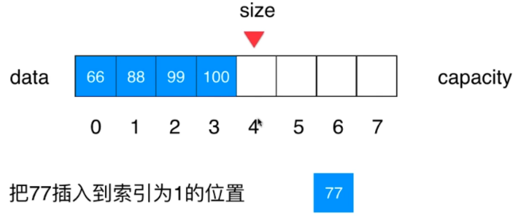 如果我们想在数组索引为1的位置插入一个元素(数组size>1),我们怎么做呢?