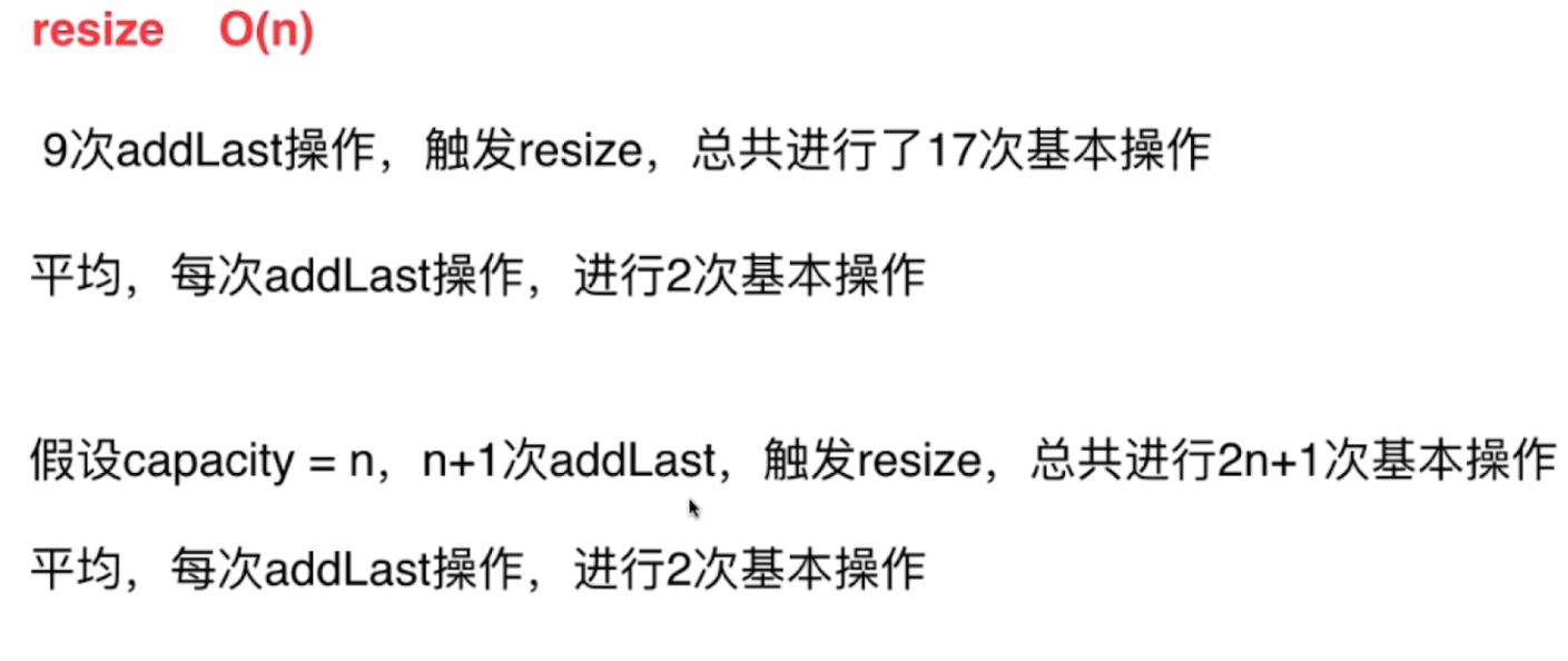 注意,这里删除的时候使用了Lazy策略,这里是为了解决复杂度震荡的问题,即:数组在临界状态下,反复扩容和缩容。