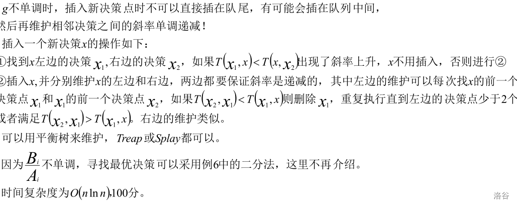 考虑到 \(g_i\) 单调上升, 那么我们由于决策单调性, 可以考虑 :