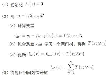因此,给定当前模型 fm-1(x),只需要简单的拟合当前模型的残差。现将回归问题的提升树算法叙述如下:
