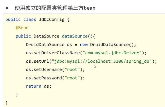 新建一个JdbcConfig类存放第三方bean