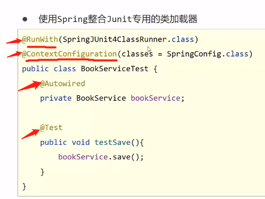 @ContextConfiguration指定spring的上下文配置类