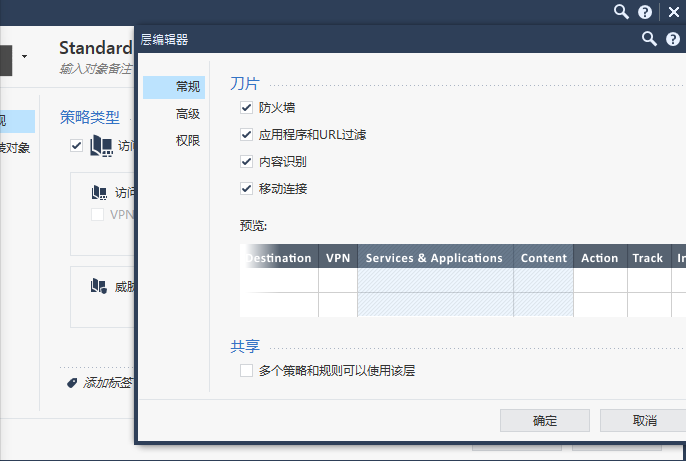 Step2:编辑访问策略,在层编辑器中勾选刀片的“应用程序和URL过滤”,“内容识别”,如下图: