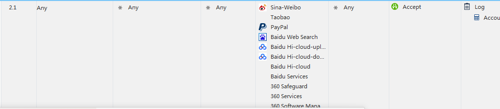 Step4:创建inline子层,名称为APP,勾选需要放行的APP,并且勾选日志追踪,如下图: