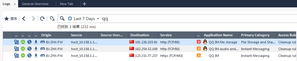 Step6:内部主机相应的APP触发策略,看日志列表如下图: