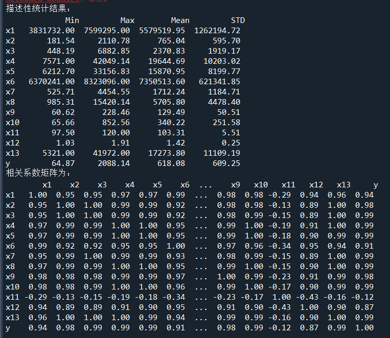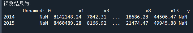 1 import sys 2 sys.path.append(r'C:\Users\86184\Desktop\文件集\data\code') # 设置路径 3 import numpy as np 4 import pandas as pd 5 from GM11 import GM11 # 引入自编的灰色预测函数 6 7 inputfile1 = r'C:\Users\86184\Desktop\文件集\data\new_reg_data.csv' # 输入的数据文件 8 inputfile2 = r'C:\Users\86184\Desktop\文件集\data\data.csv' # 输入的数据文件 9 new_reg_data = pd.read_csv(inputfile1) # 读取经过特征选择后的数据 10 data = pd.read_csv(inputfile2) # 读取总的数据 11 new_reg_data.index = range(1994, 2014) 12 new_reg_data.loc[2014] = None 13 new_reg_data.loc[2015] = None 14 l = ['x1', 'x3', 'x4', 'x5', 'x6', 'x7', 'x8', 'x13'] 15 for i in l: 16 f = GM11(new_reg_data.loc[range(1994, 2014),i].values)[0] 17 new_reg_data.loc[2014,i] = f(len(new_reg_data)-1) # 2014年预测结果 18 new_reg_data.loc[2015,i] = f(len(new_reg_data)) # 2015年预测结果 19 new_reg_data[i] = new_reg_data[i].round(2) # 保留两位小数 20 outputfile = r'C:\Users\86184\Desktop\文件集\data\new_reg_data_GM11.csv' # 灰色预测后保存的路径 21 y = list(data['y'].values) # 提取财政收入列,合并至新数据框中 22 y.extend([np.nan,np.nan]) 23 new_reg_data['y'] = y 24 new_reg_data.to_csv(outputfile) # 结果输出 25 print('预测结果为:\n',new_reg_data.loc[2014:2015,:]) # 预测结果展示