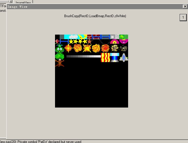 unit ImageView; interface uses Windows, Messages, SysUtils, Variants, Classes, Graphics, Controls, Forms, Dialogs, StdCtrls, ExtCtrls; type TMainView = class(TForm) Button1: TButton; ImageLabel: TLabel; Timer1: TTimer; procedure FormCreate(Sender: TObject); procedure Button1Click(Sender: TObject); procedure Timer1Timer(Sender: TObject); procedure FormClose(Sender: TObject; var Action: TCloseAction); private { Private declarations } procedure PatDz(Pnum:Byte;X1,Y1:Integer;Bmap,Zmap:TBitmap); procedure MkDpat(Bmap : TBitmap; ZX : Byte); public { Public declarations } end; const Yoko = 37; Tate = 27; DYoko = Yoko * 16; Dtate = Tate * 16; PtFull = 16; var MainView: TMainView; LoadBmap,XpatBmap,BackBmap,MakeBmap : TBitmap; BpatBmap,Z1Bmap,Z2Bmap,Z3Bmap,Z4Bmap,Z5Bmap :TBitmap; PX,PY : Byte; Count : Byte; RectL,RectB,RectM,RectD : TRect; implementation {$R *.dfm} procedure TMainView.PatDz(Pnum:Byte;X1,Y1:Integer;Bmap,Zmap:TBitmap); begin PX := (Pnum and $F) * 16; PY := Pnum and $F0; RectL := Rect(PX,PY,PX + 16,PY + 16); RectD := Rect(X1,Y1,X1 + 16,Y1 + 16); if Pnum <> 0 then if Pnum >= PtFull then begin Bmap.Canvas.CopyMode := cmSrcPaint; Bmap.Canvas.CopyRect(RectD,XpatBmap.Canvas,RectL); Bmap.Canvas.CopyMode := cmSrcAnd; Bmap.Canvas.CopyRect(RectD,Zmap.Canvas,RectL); end else begin Bmap.Canvas.CopyMode := cmSrcCopy; Bmap.Canvas.CopyRect(RectD,Zmap.Canvas,RectL); end; end; //制作残留图像用的图案 ,ZX 偏移 点数 procedure TMainView.MkDpat(Bmap : TBitmap; ZX : Byte); begin Bmap.Width := 256; Bmap.Height := 256; BpatBmap.Canvas.CopyMode := cmSrcCopy; //调取特定位置图案,8*8 的大小?调取点数是随意额? //调取的就是随意选择的,并不是特定的图案 RectL := Rect(ZX * 8 + 32,64,ZX * 8 + 40,72); RectD := Rect(0,0,8,8); BpatBmap.Canvas.CopyRect(RectD,LoadBmap.Canvas,RectL); //图案作为笔刷, Bmap.Canvas.Brush.Bitmap := BpatBmap; Bmap.Canvas.CopyMode := cmMergeCopy; //全刷了一遍 RectL := Rect(0,0,256,256); Bmap.Canvas.CopyRect(RectL,LoadBmap.Canvas,RectL); //和 去除用点阵图 ,但还是用了去除模板,做外框? Bmap.Canvas.CopyMode := cmMergePaint; Bmap.Canvas.CopyRect(RectL,XpatBmap.Canvas,RectL); Bmap.Canvas.Brush.Bitmap := nil; end; procedure TMainView.FormCreate(Sender: TObject); begin Count := 1; //载入图案库 LoadBmap := TBitmap.Create; LoadBmap.LoadFromFile(GetCurrentDir + '\Pat_Sample.bmp'); //存储去除用点阵图 XpatBmap := TBitmap.Create; XpatBmap.Width := 256; XpatBmap.Height := 256; //制作去除用点阵图 RectL := Rect(0,0,256,256); XpatBmap.Canvas.CopyMode := cmSrcCopy; XpatBmap.Canvas.CopyRect(RectL,LoadBmap.Canvas,RectL); XpatBmap.Canvas.Brush.Color := clBlack; XpatBmap.Canvas.BrushCopy(RectL,LoadBmap,RectL,clWhite); XpatBmap.Canvas.CopyMode := cmMergePaint; XpatBmap.Canvas.CopyRect(RectL,LoadBmap.Canvas,RectL); //笔刷用点阵图 BpatBmap := TBitmap.Create; BpatBmap.Width := 16; BpatBmap.Height := 16; //残留图像用点阵图 Z1Bmap := TBitmap.Create; Z2Bmap := TBitmap.Create; Z3Bmap := TBitmap.Create; Z4Bmap := TBitmap.Create; Z5Bmap := TBitmap.Create; //制作残留图像点阵图 MkDpat(Z1Bmap,3); MkDpat(Z2Bmap,6); MkDpat(Z3Bmap,8); MkDpat(Z4Bmap,10); MkDpat(Z5Bmap,12); //制作背景点阵图 BackBmap := TBitmap.Create; BackBmap.Width := DYoko; BackBmap.Height := Dtate; //绘制点阵图, MakeBmap := TBitmap.Create; MakeBmap.Width := 256; MakeBmap.Height := 256; end; procedure TMainView.FormClose(Sender: TObject; var Action: TCloseAction); begin LoadBmap.Free; XpatBmap.Free; BackBmap.Free; MakeBmap.Free; BpatBmap.Free; Z1Bmap.Free; Z2Bmap.Free; Z3Bmap.Free; Z4Bmap.Free; Z5Bmap.Free; end; procedure TMainView.Button1Click(Sender: TObject); begin Count := Count + 1; if Count = 10 then Count := 1; end; procedure TMainView.Timer1Timer(Sender: TObject); begin case Count of 1 : begin ImageLabel.Caption := 'CopyRect(RectD,LoadBmap.Canvas,RectD)'; MakeBmap.Canvas.CopyMode :=cmSrcCopy; RectD := Rect(0,0,255,255); MakeBmap.Canvas.CopyRect(RectD,LoadBmap.Canvas,RectD); end; 2: begin ImageLabel.Caption := 'BrushCopy(RectD,LoadBmap,RectD,clWhite)'; MakeBmap.Canvas.CopyMode :=cmSrcCopy; RectD := Rect(0,0,255,255); MakeBmap.Canvas.CopyRect(RectD,LoadBmap.Canvas,RectD); MakeBmap.Canvas.Brush.Color := clBlack; MakeBmap.Canvas.BrushCopy(RectD,LoadBmap,RectD,clWhite); end; 3: begin ImageLabel.Caption := 'CopyMode := cmMergePaint'; MakeBmap.Canvas.CopyMode :=cmSrcCopy; RectD := Rect(0,0,255,255); MakeBmap.Canvas.CopyRect(RectD,LoadBmap.Canvas,RectD); MakeBmap.Canvas.Brush.Color := clBlack; MakeBmap.Canvas.BrushCopy(RectD,LoadBmap,RectD,clWhite); MakeBmap.Canvas.CopyMode := cmMergePaint; MakeBmap.Canvas.CopyRect(RectD,LoadBmap.Canvas,RectD); end; 4: begin ImageLabel.Caption := 'Z1Bmap'; MakeBmap.Canvas.CopyMode :=cmSrcCopy; RectD := Rect(0,0,255,255); MakeBmap.Canvas.CopyRect(RectD,Z1Bmap.Canvas,RectD); end; 5: begin ImageLabel.Caption := '5555'; BpatBmap.Canvas.CopyMode := cmSrcCopy; RectL := Rect(0,16,16,32); RectD := Rect(0,0,16,16); BpatBmap.Canvas.CopyRect(RectD,LoadBmap.Canvas,RectL); MakeBmap.Canvas.Brush.Bitmap := BpatBmap; MakeBmap.Canvas.CopyMode := cmMergeCopy; RectM := Rect(0,0,255,255); MakeBmap.Canvas.CopyRect(RectM,LoadBmap.Canvas,RectM); end; 6: begin ImageLabel.Caption := 'cmMergePaint'; BpatBmap.Canvas.CopyMode := cmSrcCopy; RectL := Rect(3 * 8 + 32,64,3 * 8 + 40,72); RectD := Rect(0,0,16,16); BpatBmap.Canvas.CopyRect(RectD,LoadBmap.Canvas,RectL); MakeBmap.Canvas.Brush.Bitmap := BpatBmap; MakeBmap.Canvas.CopyMode := cmMergeCopy; RectM := Rect(0,0,255,255); MakeBmap.Canvas.CopyRect(RectM,LoadBmap.Canvas,RectM); MakeBmap.Canvas.CopyMode := cmMergePaint; MakeBmap.Canvas.CopyRect(RectM,XpatBmap.Canvas,RectM); MakeBmap.Canvas.Brush.Bitmap := nil; end; 7: begin ImageLabel.Caption := 'Z3Bmap'; MakeBmap.Canvas.CopyMode :=cmSrcCopy; RectD := Rect(0,0,255,255); MakeBmap.Canvas.CopyRect(RectD,Z3Bmap.Canvas,RectD); end; 8: begin ImageLabel.Caption := 'Z5Bmap'; MakeBmap.Canvas.CopyMode :=cmSrcCopy; RectD := Rect(0,0,255,255); M