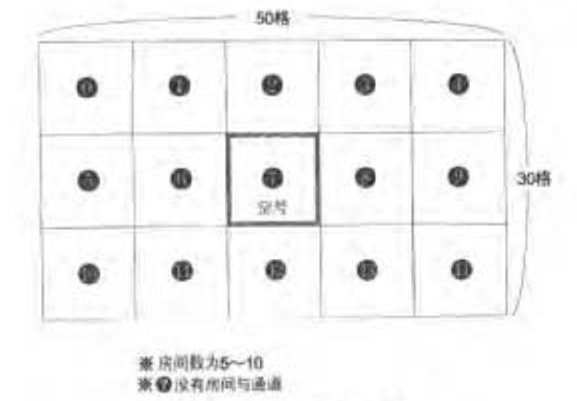 这15个块 有一定规则随机生成5-9 个房间,生成房间数据