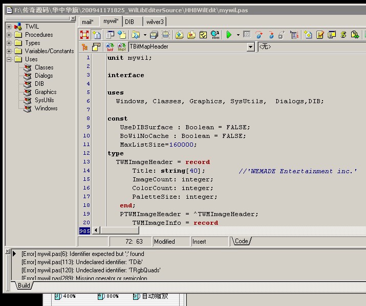 下一步开始学习WIL 文件编码,找到了一个早期的HH8WilEdit 的源码