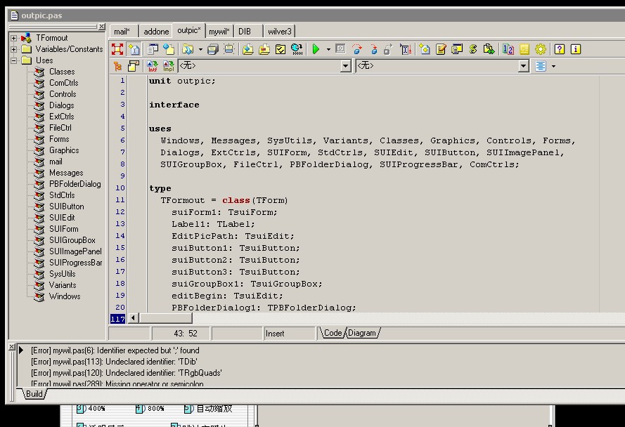 1,建立起来大框架,复制原程序,手动输入 除了 mywil , DIB 单元的程序。