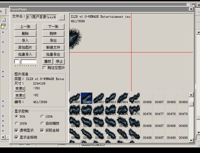 unit main; interface uses Windows, Messages, SysUtils, Variants, Classes, Graphics, Controls, Forms, Dialogs, StdCtrls, ExtCtrls, Grids, ExtDlgs, mywil, ComCtrls; type TFormMain = class(TForm) Panel1: TPanel; Label1: TLabel; edtFileName: TEdit; btnLoadFile: TButton; btnUp: TButton; btnDown: TButton; btnDel: TButton; btnJump: TButton; btnPlay: TButton; btnStop: TButton; btnInput: TButton; btnOutput: TButton; btnAddPic: TButton; btnCreate: TButton; btnBatchInput: TButton; btnBatchOut: TButton; GroupBox1: TGroupBox; Label2: TLabel; btnX: TButton; btnY: TButton; Label3: TLabel; Label4: TLabel; GroupBox2: TGroupBox; rb50: TRadioButton; rb100: TRadioButton; rb200: TRadioButton; rbAutoZoom: TRadioButton; chkTransparent: TCheckBox; chkRealXY: TCheckBox; chkCoordinate: TCheckBox; Panel2: TPanel; Panel3: TPanel; DrawGrid1: TDrawGrid; Panel4: TPanel; ScrollBox1: TScrollBox; lblType: TLabel; lblSize: TLabel; lblX: TLabel; lblY: TLabel; lblIndex: TLabel; OpenDialog1: TOpenDialog; SaveDialog1: TSaveDialog; OpenPictureDialog1: TOpenPictureDialog; SavePictureDialog1: TSavePictureDialog; pbShow: TPaintBox; tmrPlay: TTimer; trckbrPlayInteval: TTrackBar; chkJump: TCheckBox; procedure FormCreate(Sender: TObject); procedure FormPaint(Sender: TObject); procedure pbShowPaint(Sender: TObject); procedure btnLoadFileClick(Sender: TObject); procedure DrawGrid1DrawCell(Sender: TObject; ACol, ARow: Integer; Rect: TRect; State: TGridDrawState); procedure btnPlayClick(Sender: TObject); procedure tmrPlayTimer(Sender: TObject); procedure btnStopClick(Sender: TObject); procedure btnUpClick(Sender: TObject); procedure btnDownClick(Sender: TObject); procedure trckbrPlayIntevalChange(Sender: TObject); procedure btnJumpClick(Sender: TObject); procedure btnInputClick(Sender: TObject); procedure btnOutputClick(Sender: TObject); procedure btnBatchOutClick(Sender: TObject); procedure btnDelClick(Sender: TObject); private { Private declarations } procedure FillInfo(Index: Integer); public { Public declarations } end; const PLAYINTERVAL = 20; var FormMain: TFormMain; MainBitMap: TBitmap; BmpIndex, BmpWidth, BmpHeight: Integer; BmpX, BmpY: Integer; BmpZoom: Real; BmpTransparent, Stop, DrawYes: Boolean; Wil: TWIL; implementation {$R *.dfm} uses OutPic; procedure TFormMain.FormCreate(Sender: TObject); begin Wil := TWIL.Create(self); DrawYes := True; trckbrPlayInteval.Position := 3; BmpIndex := 0; tmrPlay.Interval := trckbrPlayInteval.Position * PLAYINTERVAL; pbShow.Width := ScrollBox1.Width - 5; pbShow.Height := ScrollBox1.Height - 5; end; procedure TFormMain.FormPaint(Sender: TObject); begin pbShow.Refresh; end; procedure TFormMain.pbShowPaint(Sender: TObject); var rczoom : TRect; WidthZoom, HeightZoom : Integer; str: string; begin if Wil.Stream <> nil then begin WidthZoom := Wil.Width; HeightZoom := Wil.Height; WidthZoom := Round(WidthZoom / BmpZoom); HeightZoom := Round(HeightZoom / BmpZoom); rczoom := Rect(BmpX, BmpY, BmpX + WidthZoom , BmpY + HeightZoom); if not chkTransparent.Checked then begin pbShow.Canvas.Brush.Color := clBlack; pbShow.Canvas.FillRect(rczoom); end; Wil.DrawZoom(pbShow.Canvas, rczoom, BmpIndex); pbShow.Canvas.Brush.Style := bsClear; pbShow.Canvas.TextOut(5, 5, Wil.Title); str := IntToStr(BmpIndex) + '/' + IntToStr(Wil.ImageCount - 1); pbShow.Canvas.TextOut(5,21,str); end; if chkCoordinate.Checked then begin pbShow.Canvas.Pen.Style := psSolid; pbShow.canvas.Pen.Color := clRed; pbShow.Canvas.MoveTo(0, pbShow.Height div 2); pbShow.Canvas.LineTo(pbShow.Width, pbShow.Height div 2); pbShow.Canvas.MoveTo(pbShow.Width div 2, 0); pbShow.Canvas.LineTo(pbShow.Width div 2, pbShow.Height); end; end; procedure TFormMain.btnLoadFileClick(Sender: TObject); begin if OpenDialog1.Execute then begin edtFileName.Text := OpenDialog1.FileName; if FileExists(edtFileName.text) then begin if Wil.Stream <> nil then Wil.Finalize; Wil.FileName := edtFileName.Text; Wil.Initialize; if Wil.Stream = nil then begin ShowMessage('WIL文件错误'); Exit; end; BmpIndex := 0; DrawGrid1.RowCount := (Wil.ImageCount div 10) + 1; DrawGrid1.Refresh; FillInfo(BmpIndex); end; end; end; procedure TFormMain.FillInfo(Index: Integer); var Width1, Height1: Integer; Zoom, Zoom1: Real; begin Zoom := 1; Zoom1 := 1; BmpZoom := 1; if Wil.Stream <> nil then begin BmpIndex := Index; BmpTransparent := chkTransparent.Checked; MainBitMap := Wil.Bitmaps[Index]; Width1 := Wil.Width; Height1 := Wil.Height; if (not Stop) and chkJump.Checked then //跳过空图片 begin while ((Width1 <= 1) or (Height1 <= 1)) and (BmpIndex < Wil.ImageCount - 1) do begin Inc(BmpIndex); Width1 := Wil.Bitmaps[BmpIndex].Width; Height1 := Wil.Bitmaps[BmpIndex].Height; end; end; // 设置BMPX,Y 值,图片在画框中的起始位置 if rbAutoZoom.Checked then //自动大小 begin if (Width1 < pbShow.Width div 2) and (Height1 < pbShow.Height div 2) then begin BmpZoom := 1; //小于画框图片缩放比例为1 pbShow.Width := ScrollBox1.Width; pbShow.Height := ScrollBox1.Height; if chkRealXY.Checked then //显示坐标线 begin BmpX := pbShow.Width div 2 + Wil.px; //加上偏移坐标 BmpY := pbShow.Height div 2 + Wil.py; end else begin BmpX := pbShow.Width div 2; BmpY := pbShow.Height div 2; end; end else begin //图片大于画框的一半,因为需要画十字线, pbShow.Width := ScrollBox1.Width; pbShow.Height := ScrollBox1.Height; if Width1 > (pbShow.Width div 2) then Zoom := Width1 / pbShow.Width * 2; if Height1 > (pbShow.Height div 2) then Zoom1 := Height1 / pbShow.Height * 2; if Zoom > Zoom1 then //选择缩小比例大的值 BmpZoom := Zoom else BmpZoom := Zoom1; if chkRealXY.Checked then //显示坐标线 begin BmpX := pbShow.Width div 2 + Wil.px; BmpY := pbShow.Height div 2 + Wil.py; end else begin BmpX := pbShow.Width div 2; BmpY := pbShow.Height div 2; end; end; end else begin //选择缩放比例 if rb50.Checked then BmpZoom := 2; if rb100.Checked then BmpZoom := 1.0; if rb200.Checked then BmpZoom := 0.5; pbShow.Width := ScrollBox1.Width; pbShow.Height := ScrollBox1.Height; Width1 := 