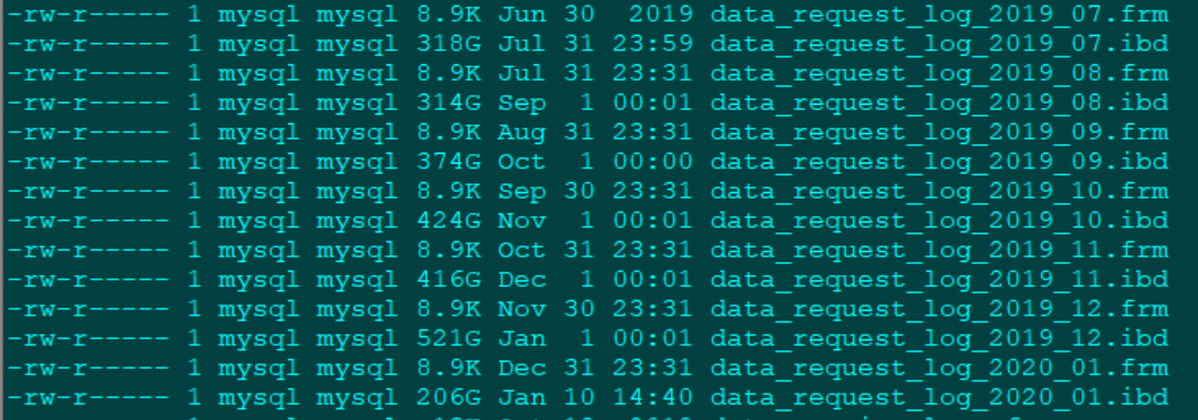 按月分表的表每个月数据量300至500G