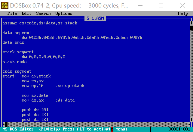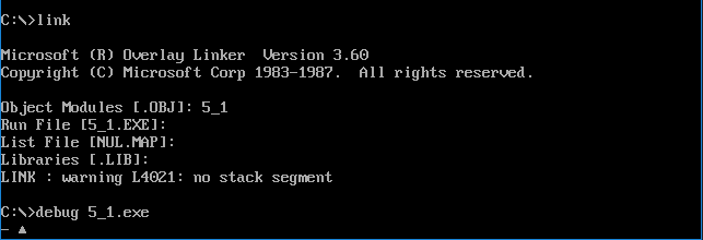 1、将下面的程序编译,链接,用debug加载,跟踪,然后回答问题。