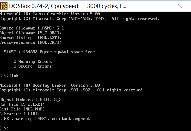 该程序加载后,code段的段地址为X,则data段的段地址X-2,stack的段地址为X-1