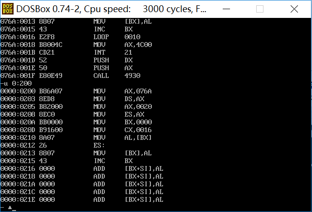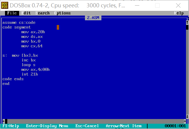 二、综合使用 loop,[bx],编写完整汇编源程序,实现向内存 0:200~0:23F 依次传送数据 0~63(3FH)。