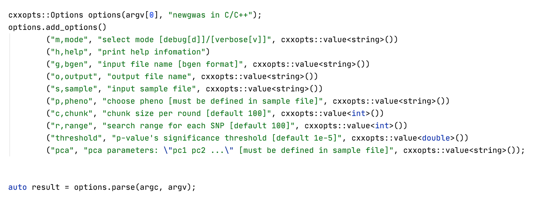 在main函数中,声明了std::vector<double> gwas_result;,计算完成后,将结果存储到gwas_result中,然后通过out_res函数输出程序执行结果。