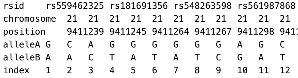 std::vector<string> title = {"rsid", "chromosome", "position", "alleleA", "alleleB", "index"};