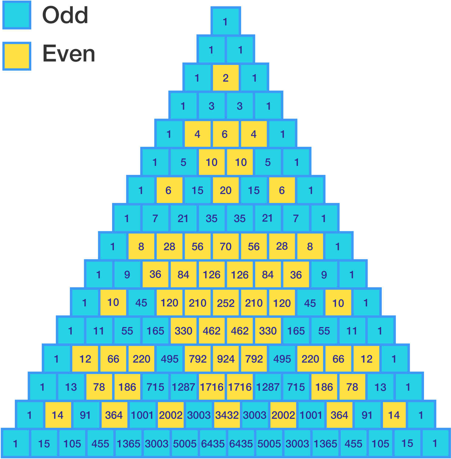 用到的结论:C(m,n) is divisible by p if and only if at least one of the base-p digits of n is greater than the corresponding base-p digit of m.