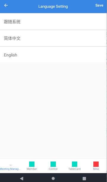 切换到English:底部导航栏第一个item“会议管理”在English定义定义为Meeting Management,可以看到原来简体中文的位置的Meeting Management已经不够位置显示,出现了省略号...(尬):