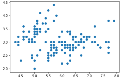 plt.scatter(iris.data[:,0],iris.data[:,1]) plt.show()