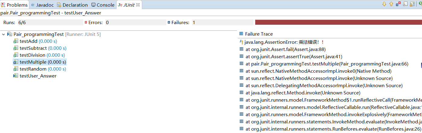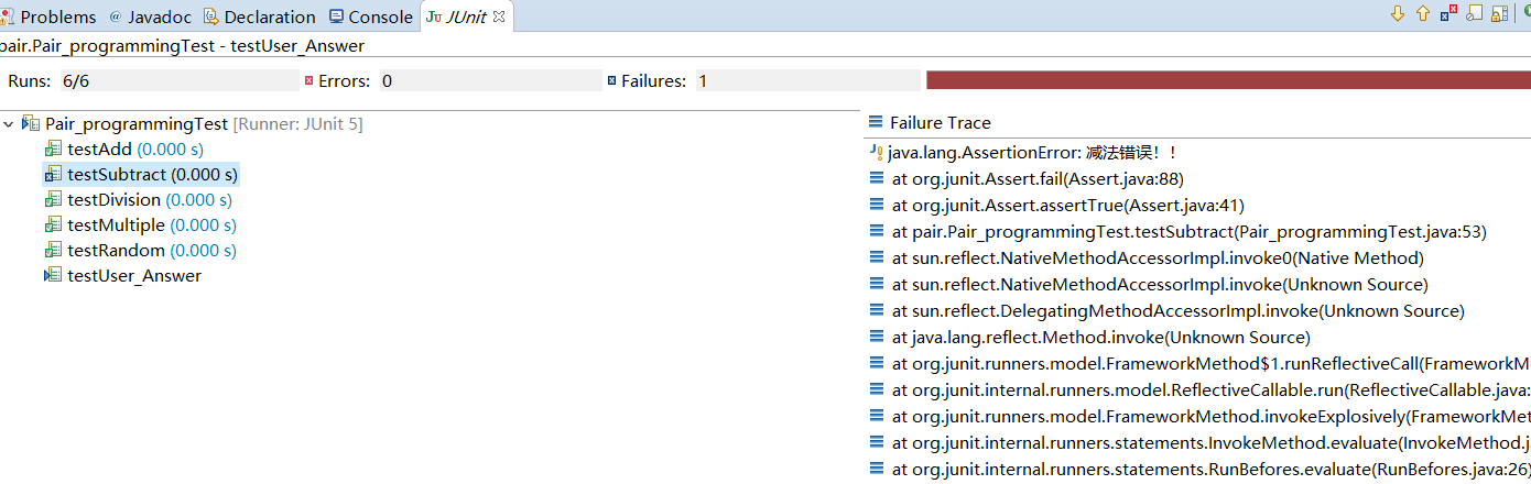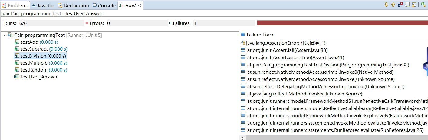 我们发现JUnit结果出现了一个Failure,需要整除,才正确。
