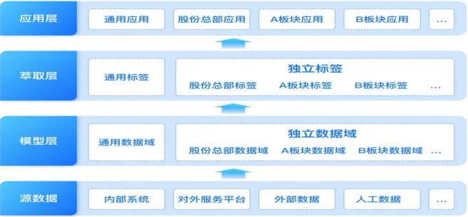 采用中台化数据体系,在原始数据层基础上建立标准定义与分层模型,设置通用模块与业务独立模块,支持多租户隔离。