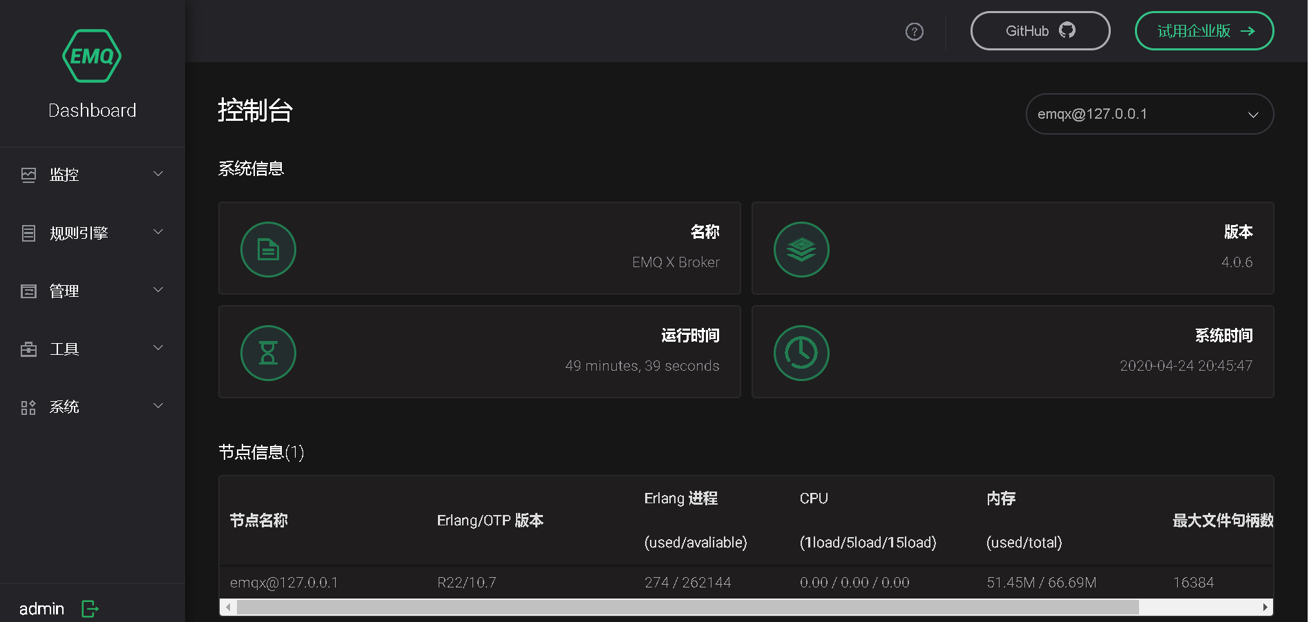 EMQx Broker是由EMQ公司推出的开源MQTT Broker,支持分布式集群,限流限速,共享订阅等诸多便捷功能。