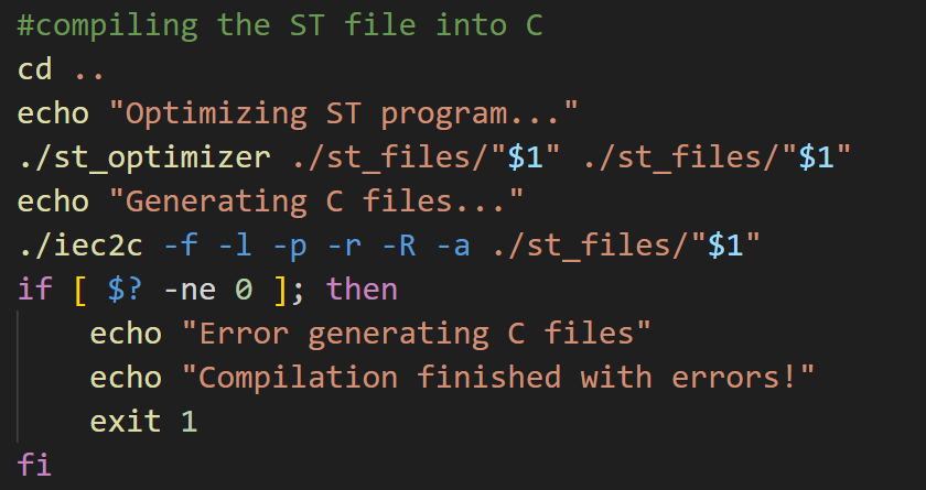 目前,matiec项目生成两个编译器:iec2c和iec2iec,它们接受相同的输入——包含ST、IL和/或SFC代码的文本文件。