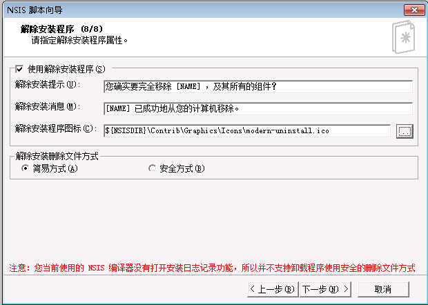 此处如果有特有的卸载ico,可选择,因做测试,用默认的