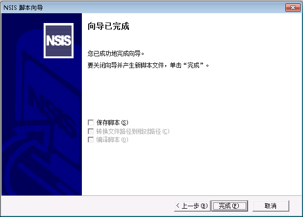 点击完成后生成向导脚本