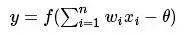 1943年,McCulloch和Pitts将上图的神经元结构用一种简单的模型进行了表示,构成了一种人工神经元模型,也就是我们现在经常用到的“M-P神经元模型”,如下图所示:
