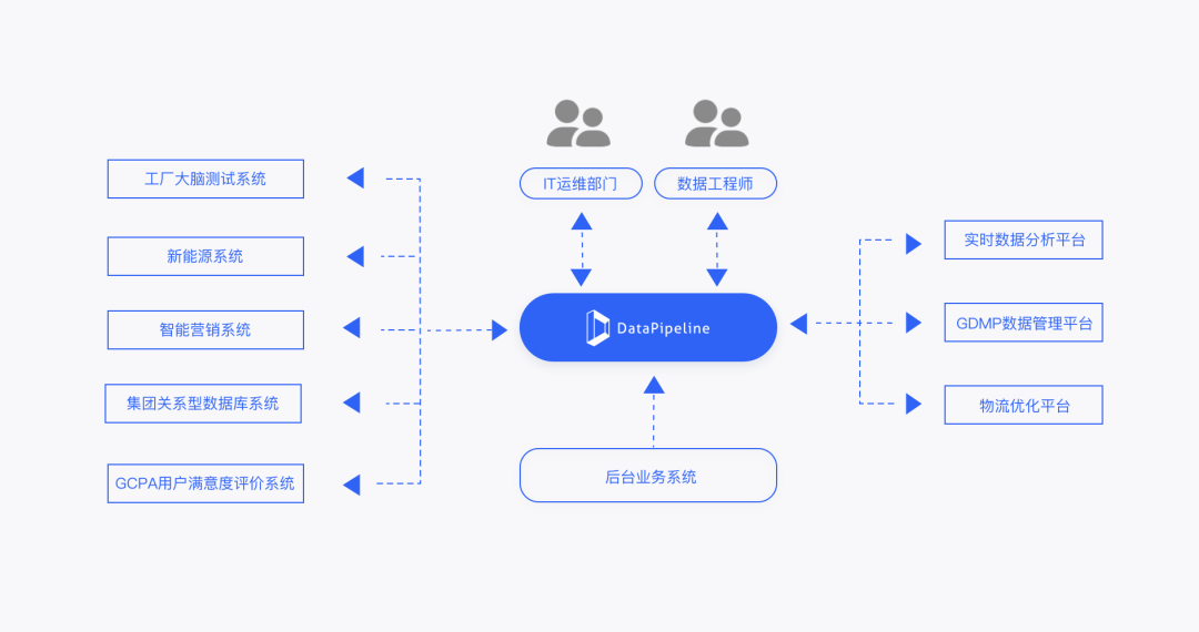 客户需要将分布于工厂大脑测试系统、新能源系统、智能营销系统、集团关系型数据库系统、用户满意度评价系统等的数据高效提供到数据管理、实时分析、物流优化等平台,以提升生产运营及企业管理的效率及质量。采用基于日志的增量数据获取等技术,DataPipeline为吉利集团智能制造、智慧营销、客户服务等实时应用场景提供各类数据管理技术秒级延迟的实时数据采集与分发,打通了Oracle 11G、Oracle 12C、SQL Server、MySQL 5.7、Hive等数据库管理技术。
