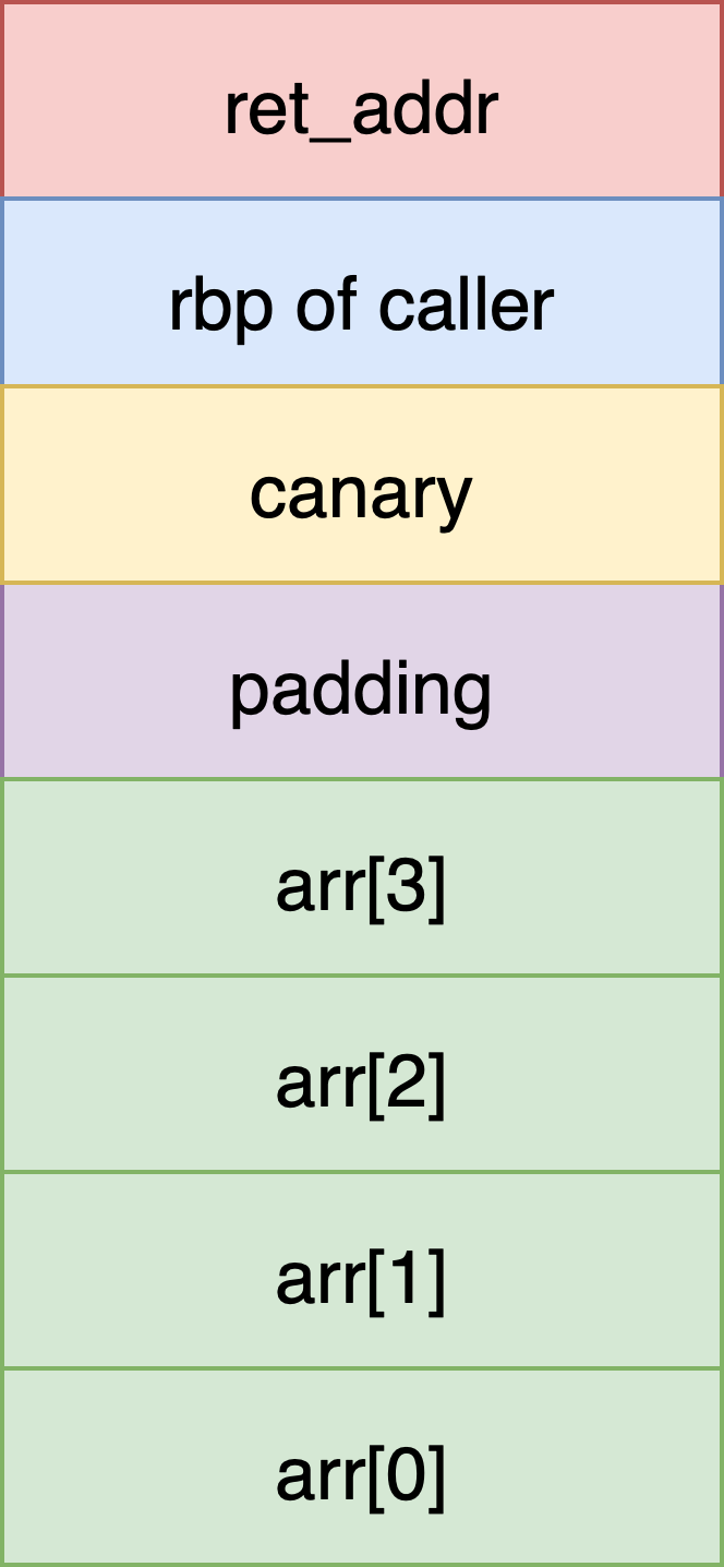 数组本身也是利用指针寻址的,对于 uint_32 型数组,arr[i] 与 *(a + i * 4) 本质上是一致的。因此如果没有对数组边界进行检查,那么上图中 arr[7] 就代表栈上的返回地址了。