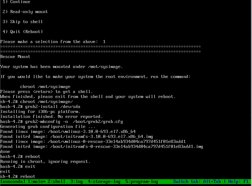 更改环境 重新建立加载sda分区,重新构建grub菜单配置文件