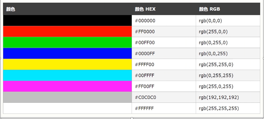 属性值主要分为两种,一种是单词表示法,一种是颜色值(十六进制,rgba)