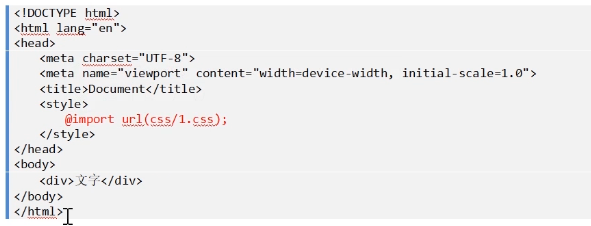 书写位置:head标签的内部,title标签的下面,style标签内部,通过@import进行导入