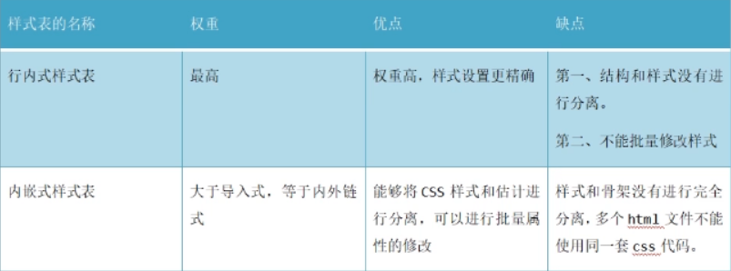 四种样式表的区别和优缺点