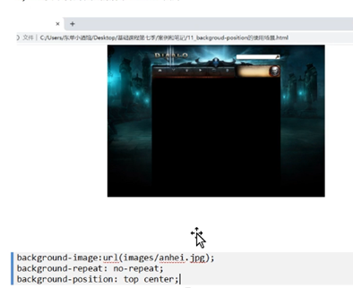第二个属性值的可选值:top、center、bottom,分别表示图片在垂直方向上居上、居中、居下