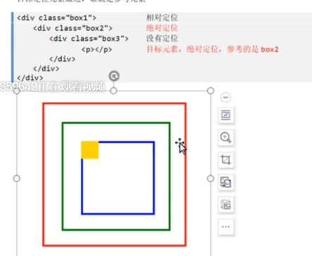 需要注意的是绝对定位的参考点是不固定的,有可能是某个祖先级元素,也可能是body标签