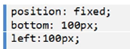 性质:固定定位元素是脱标的,让出标准流位置,可以设置宽度和高度,也可以指定任意位置,不设置宽度和高度只能被内容撑高(宽)